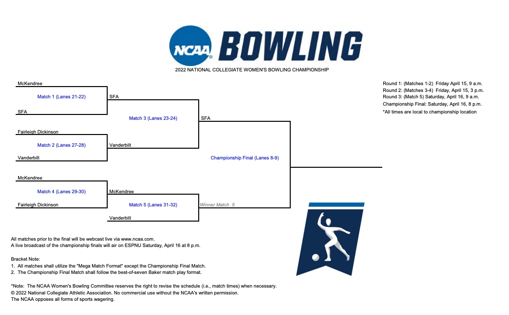 Stephen F. Austin defeated Vanderbilt in Match 3 on Friday, advancing to the NC bowling championship final. Vanderbilt will battle McKendree in Match 5 in an elimination showdown for the second spot in the national championship.