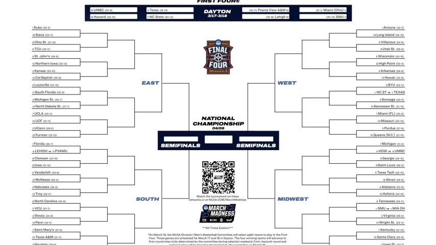 Here is the 2025 NCAA tournament bracket for March Madness