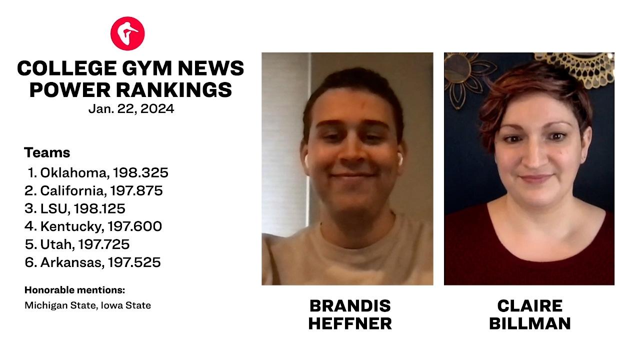 Pfister snagged one of six perfect 10s awarded at the Tennessee Collegiate Classic, landing her back in the power rankings after an uncharacteristic miss in week two. Head-on cell phone video showed a substantial leg separation during the pre-flight, but the judges realistically may have missed it from their sideline vantage point. Her landing was objectively spot on.