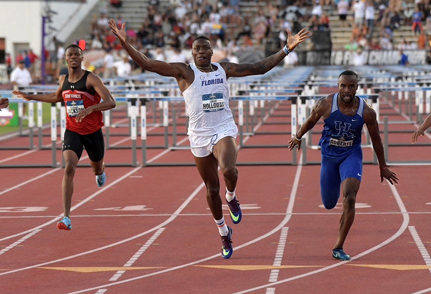 Holloway entered as the two-time defending 110-meter hurdles champion, winning every year since he was a freshman. Holloway also won the short hurdles every year of his indoor career, taking home three 60-meter hurdle titles.