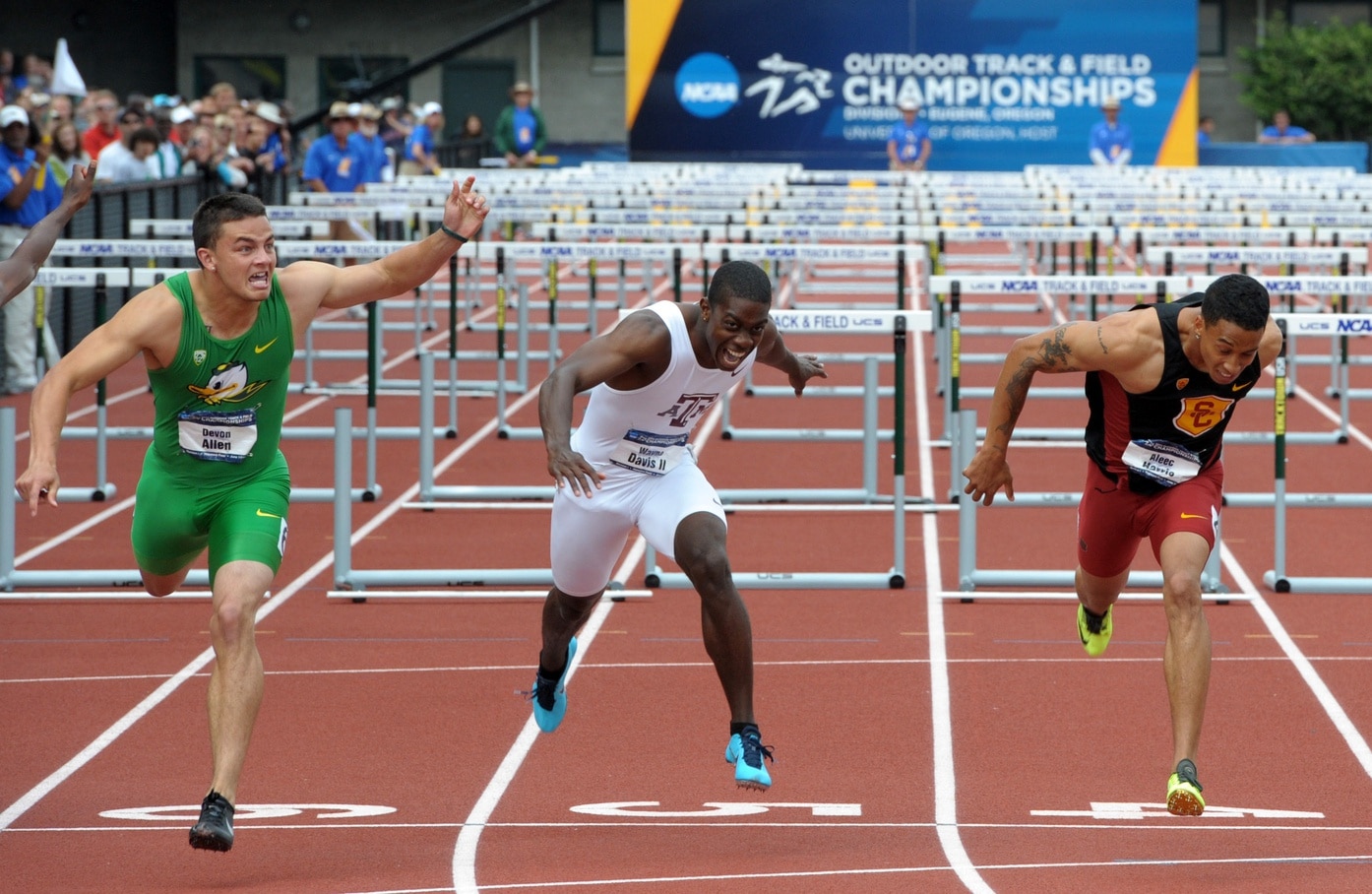 The next event was the 110-meter hurdle finals and Oregon had one athlete participating, Devon Allen.
