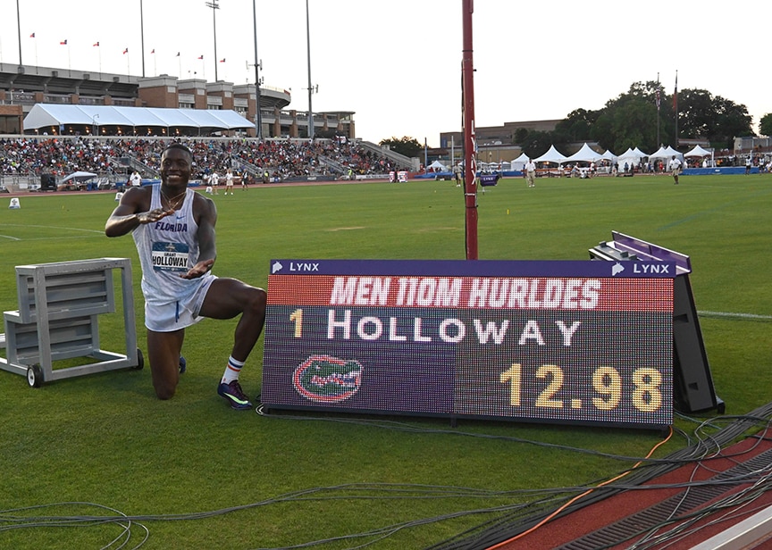 Holloway entered as the two-time defending 110-meter hurdles champion, winning every year since he was a freshman. Holloway also won the short hurdles every year of his indoor career, taking home three 60-meter hurdle titles.