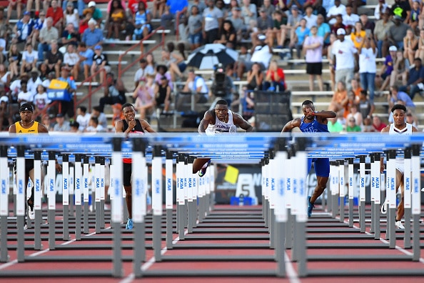 The 110 meter hurdles is a sprint, and this race was so fast that if you blinked, you might've missed it.